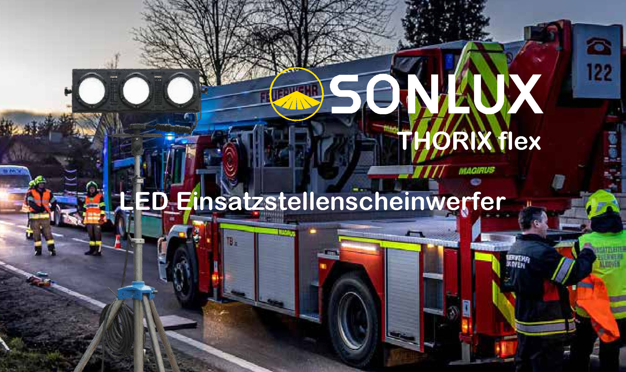 Die neue flexibel einsetzbare Variante des leistungsstarken THORIX LED-Strahlers von SONLUX erweitert enorm bereits vorhandene Anwendungsmöglichkeiten der Leuchte und bietet noch mehr Mobilität für die sicherheitsrelevante Ausleuchtung des Einsatzortes, besonders bei Rettungs-und Hilfseinsätzen.